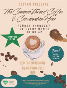 Happening every fourth Thursday of every month, The Common Thread Coffee & Conversation Hour will be offered by STRAWW for free!