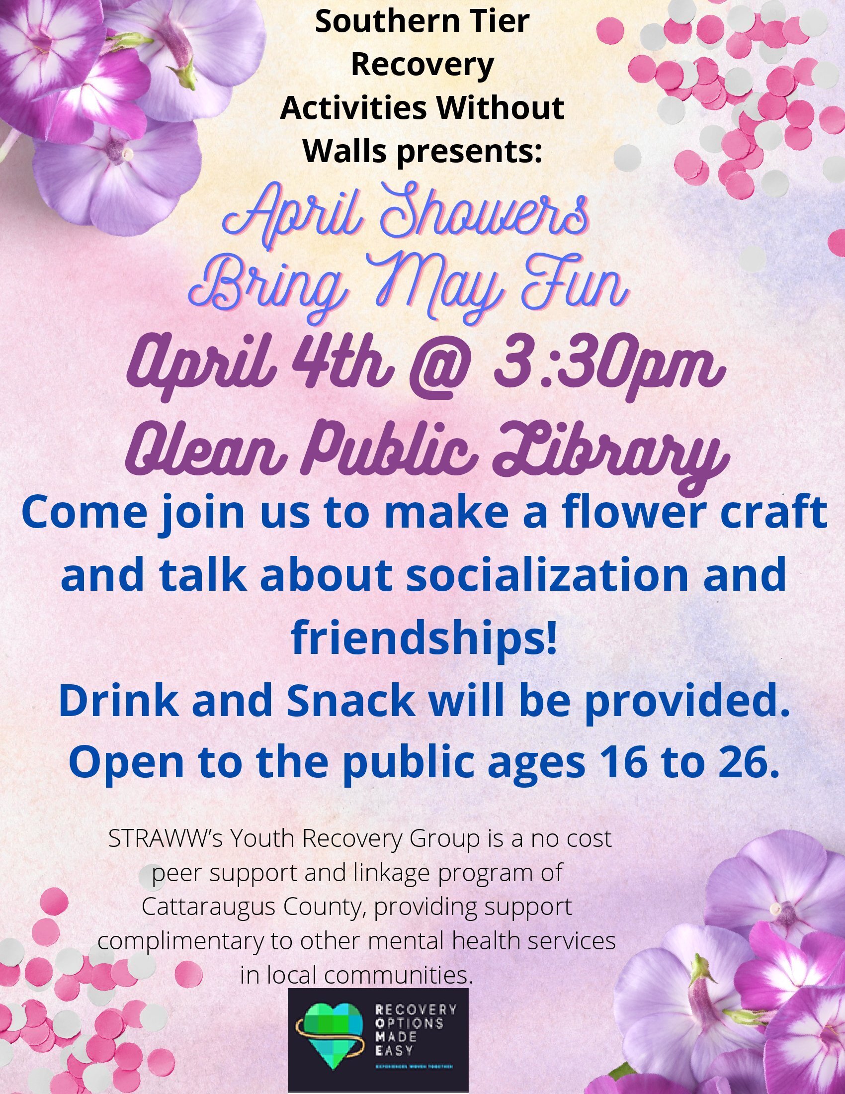 Southern Tier Recovery Activities Without Walls invites you to attend a free event at the Olean American Legion. First come first serve. 50 spots available.