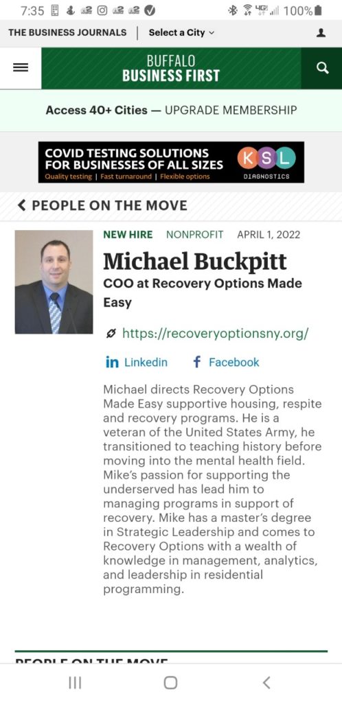Michael Buckpitt Recognized in Buffalo Business First People on the Move