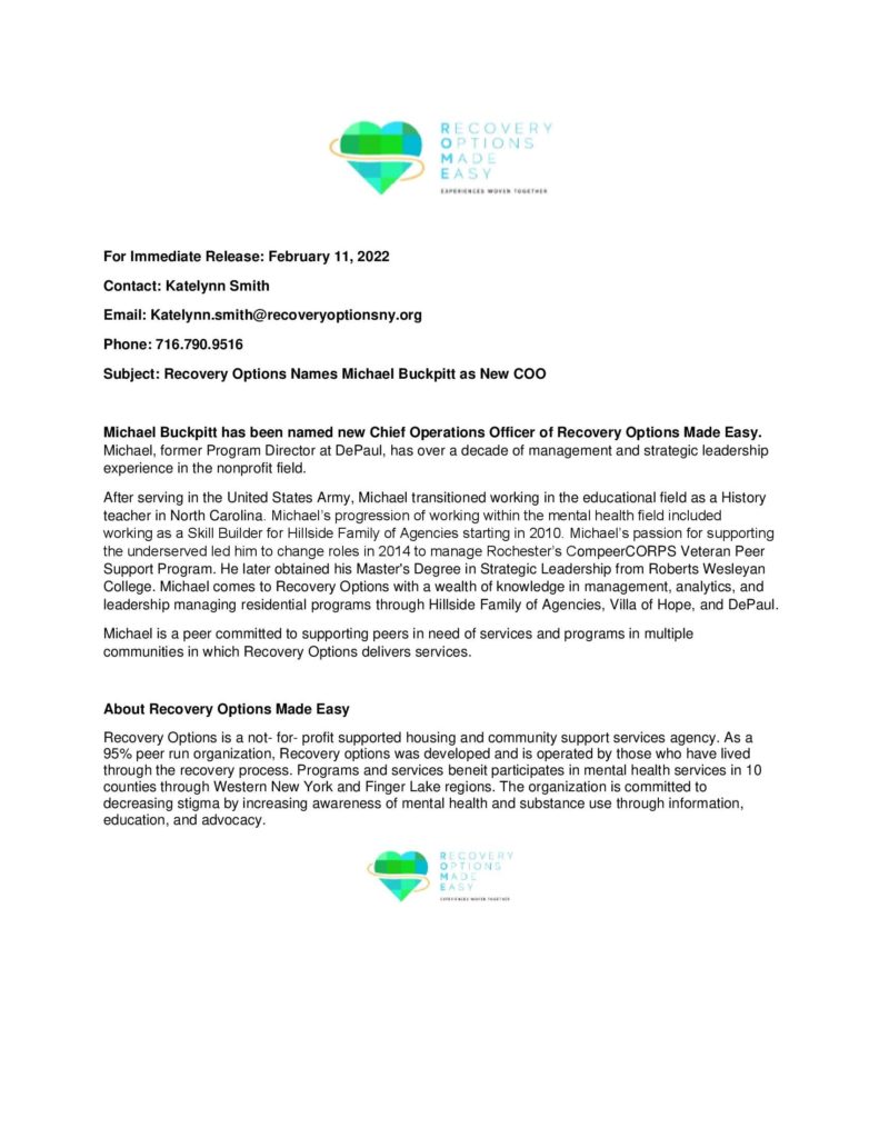Recovery Options Made Easy Names Michael Buckpitt as New COO
