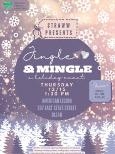 On Thursday, December 15th, 2022 beginning at 1:30pm, STRAWW will be hosting a Jingle & Mingle Holiday event! The event will be held at the American legion at 307 East State Street, Olean, NY.