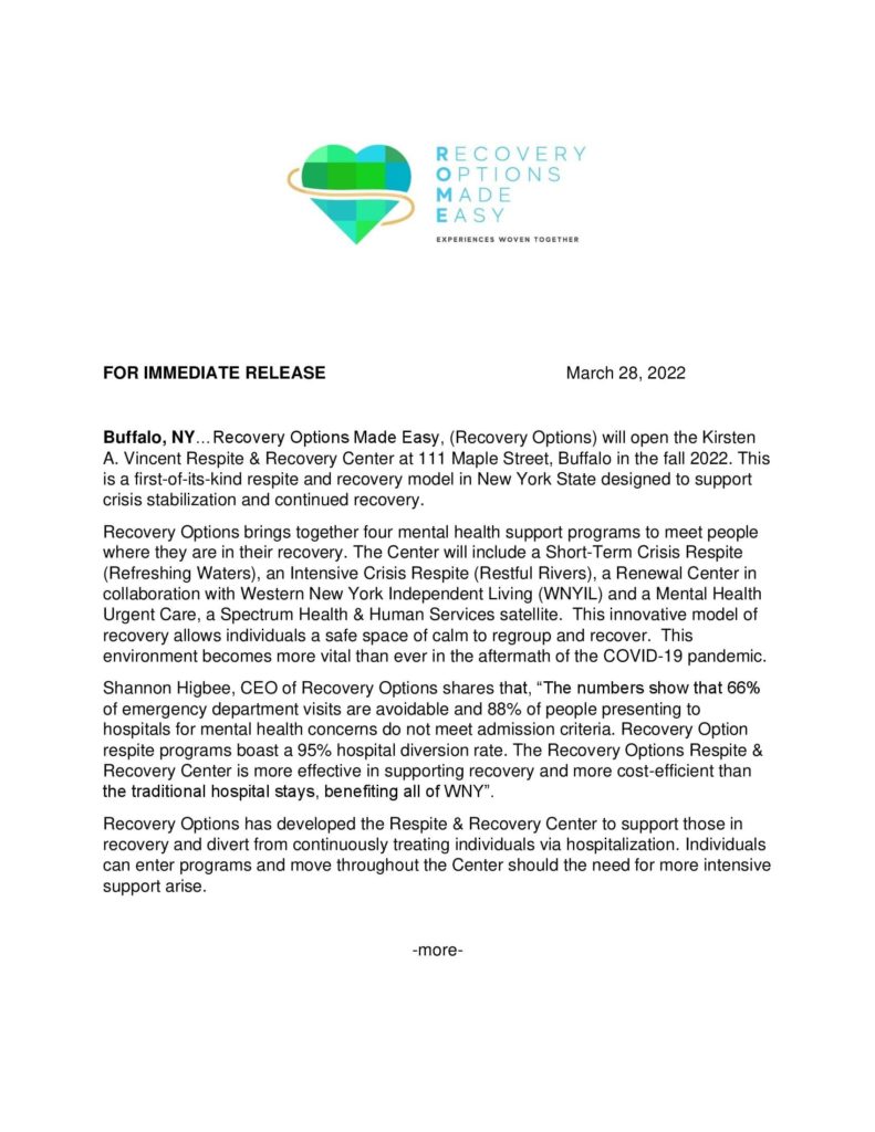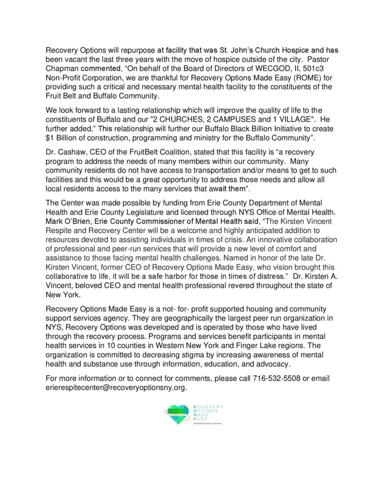 The Kirsten A. Vincent Respite & Recovery Center at 111 Maple Street, Buffalo will open this Fall.